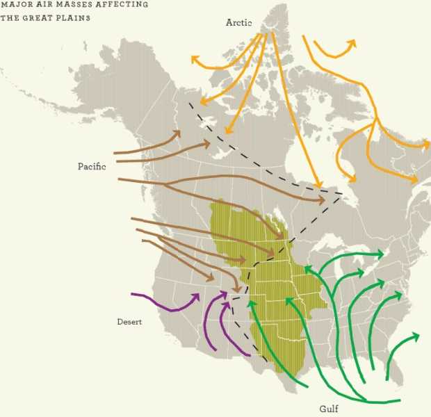 The Great Plains climate is influenced by the interplay of four strong winds.