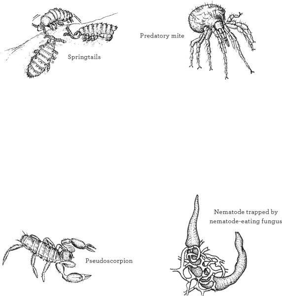 Predators here include arachnids such as predatory mites and pseudoscorpions.