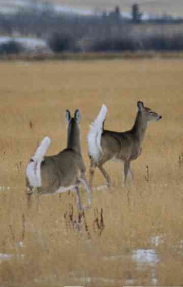 When danger is sensed, they raise their white, flaglike tail as a warning signal and dart into a nearby woods for shelter.
